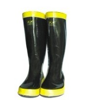 消防膠靴是消防員進(jìn)入火場滅火時(shí)(D類滅火器)的腳部防護(hù)裝備;膠靴底部內(nèi)嵌鋼板,具有防水和防穿刺功能,亦具備基本的隔熱(隔熱服)和絕緣功能。主要材料為橡膠、鋼板。